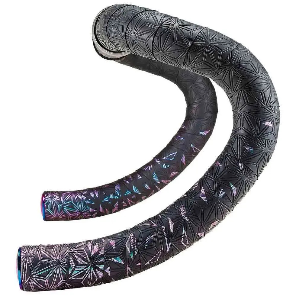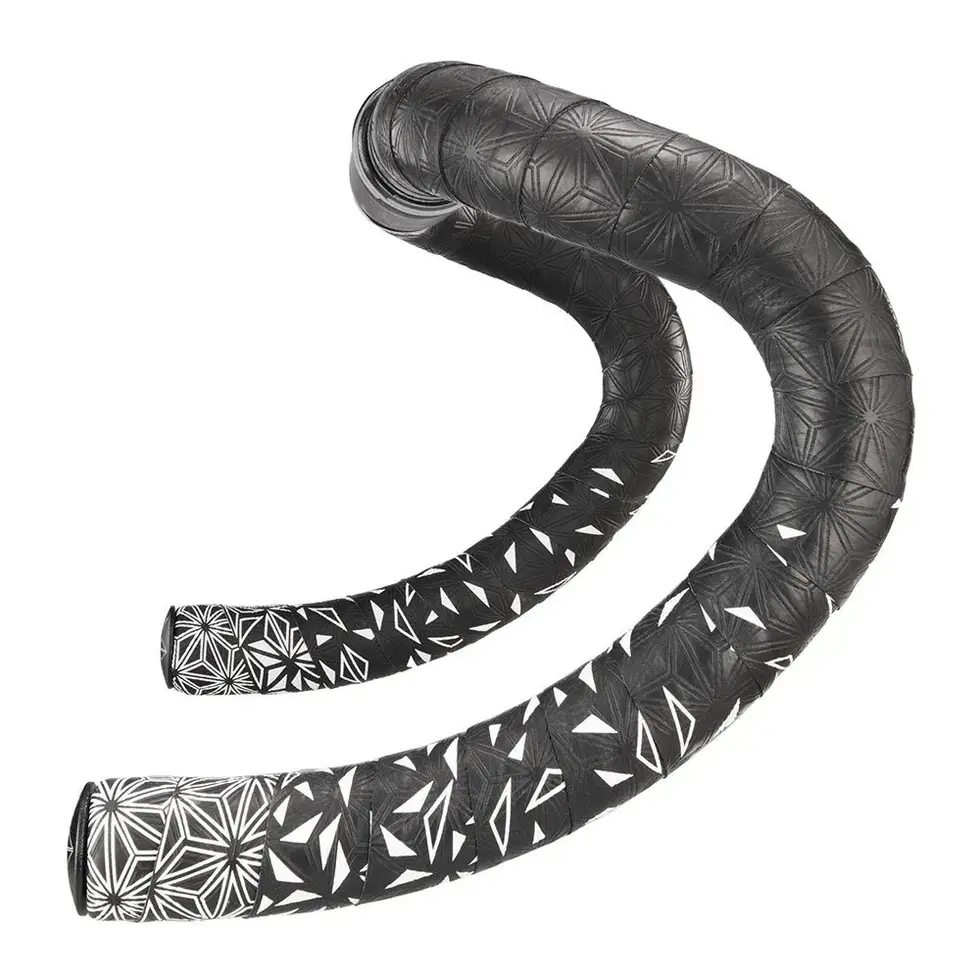Il nastro manubrio SUPACAZ Star Fade assicura un'ottima sensazione di aderenza e di comodità sotto i guanti del ciclista! È composto da uno strato superiore in poliuretano, materiale resistente agli attacchi esterni (raggi UV, pioggia), e uno strato sottile di schiuma che assorbe le vibrazioni. Questo nastro favorisce l'aderenza con la sua decorazione goffrata in superficie.